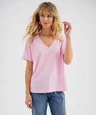 Tee-shirt manches courtes col V uni en coton femme rose vif