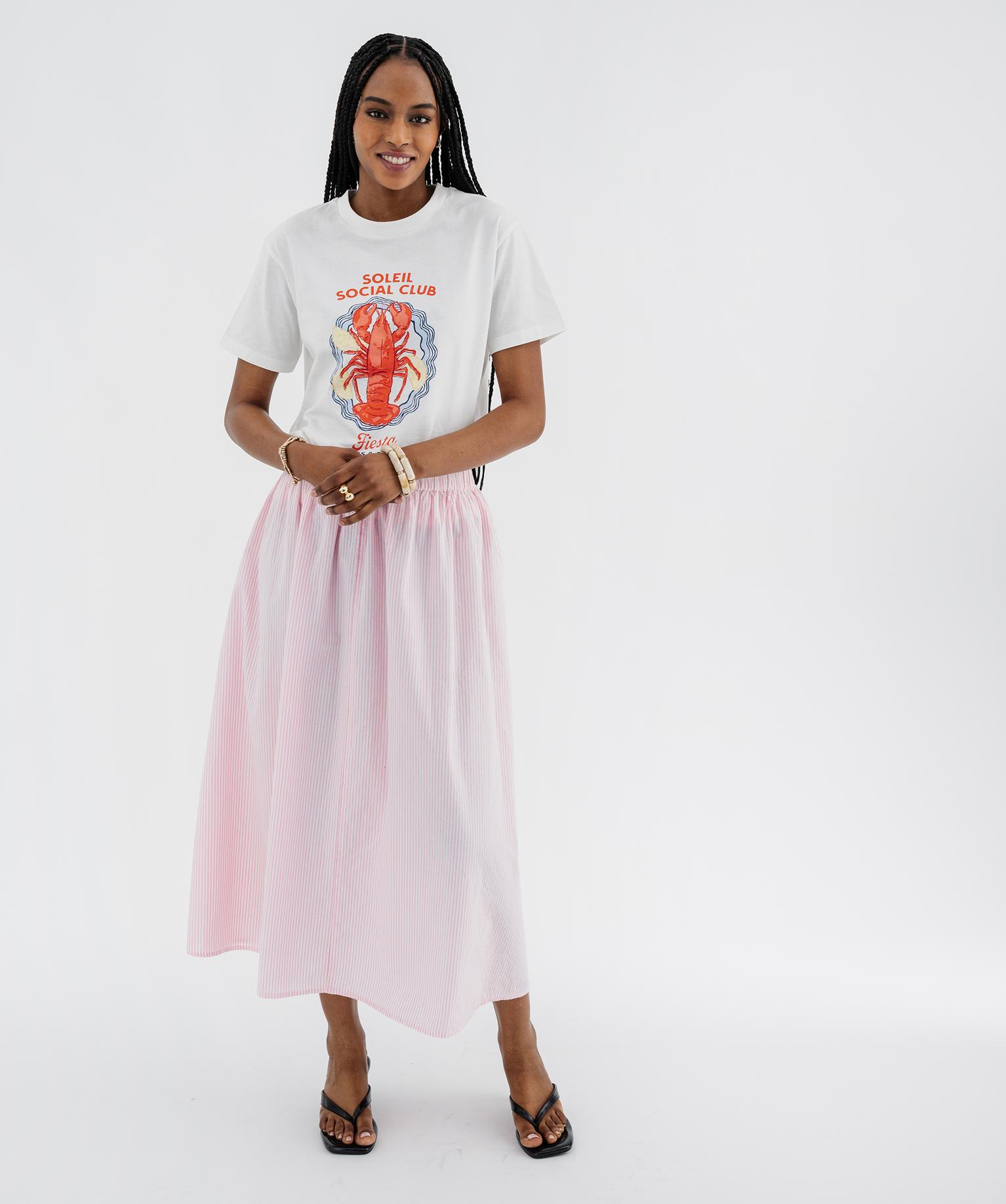 Ce tee-shirt à manches courtes imprimé ajoutera une belle touche de couleur et de bonne humeur dans le vestiaire féminin. Un modèle ample, avec épaules tombantes, conçu pour offrir un maximum de confort et un look hyper tendance. Ce tee-shirt femme possède un col rond souligné par un large biais. Ses motifs estivaux et pleins d’humour ajouteront une note légèrement décalée aux tenues du quotidien. Un modèle parfait avec un short en jean et des baskets.