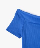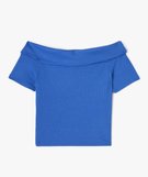 Tee-shirt manches courtes coupe courte et col Bardot fille bleu