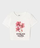Tee-shirt manches courtes coupe courte imprimé Japon fille ecru