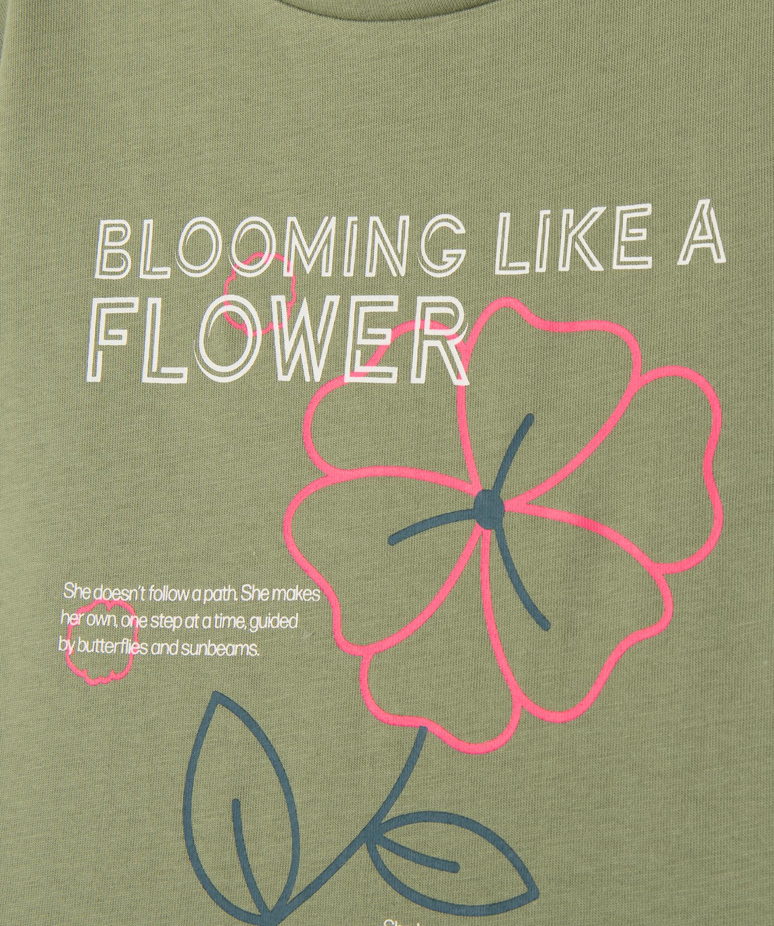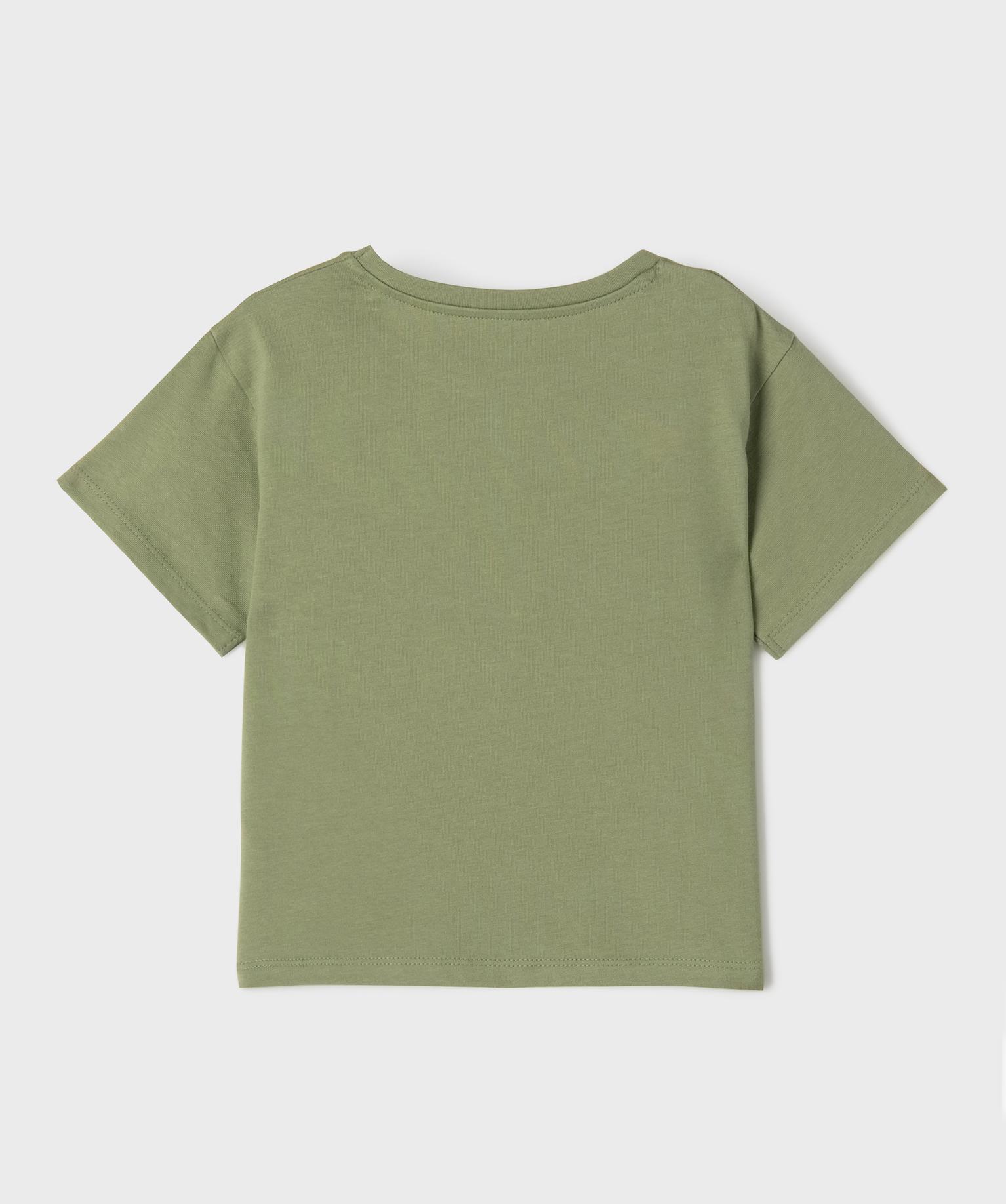 Tee-shirt manches courtes coupe large avec motif sur le buste fille vert