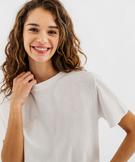 Tee-shirt manches courtes coupe large décolleté brodé femme blanc chine
