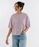 Tee-shirt manches courtes coupe large en jersey de coton rayé femme rose vif