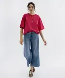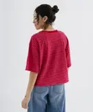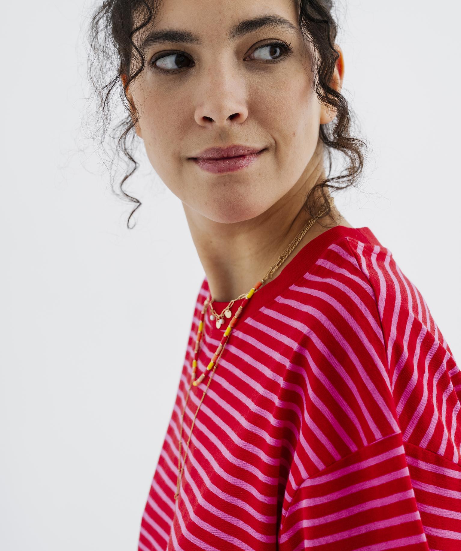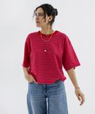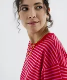 Tee-shirt manches courtes coupe large en jersey de coton rayé femme rouge