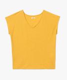 Tee-shirt manches courtes coupe loose en lin femme jaune fonce
