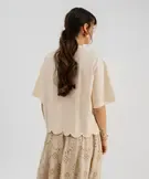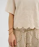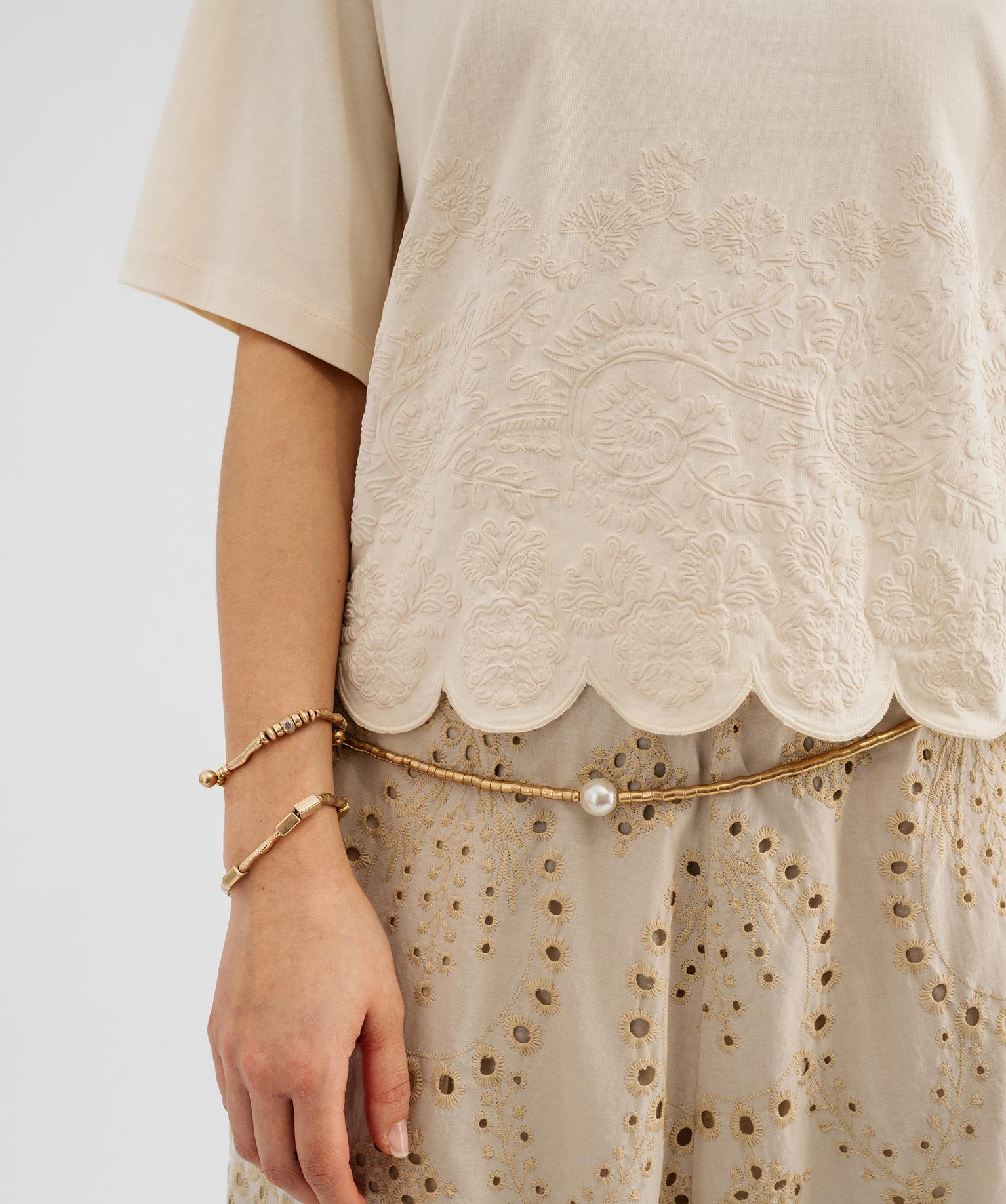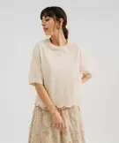 Tee-shirt manches courtes coupe oversize avec finitions dentelées femme beige clair