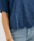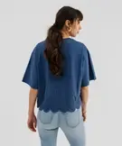 Tee-shirt manches courtes coupe oversize avec finitions dentelées femme bleu