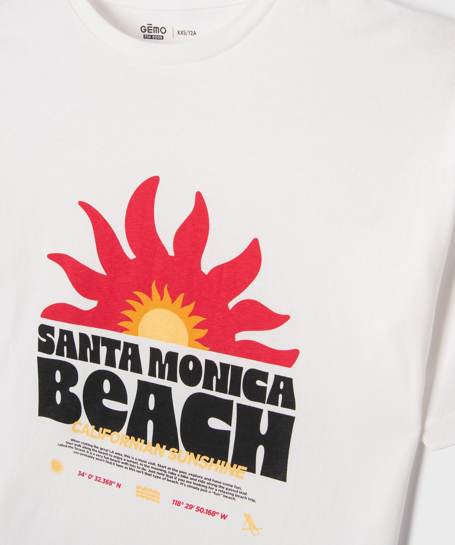 Look estival et décontracté garanti pour les ados avec ce tee-shirt à manches courtes. Un modèle confortable et tendance décoré d’inscriptions sur l’avant et/ou dans le dos, faisant référence aux plages de la côte ouest américaine. Ce tee-shirt oversize pour garçon séduit également par sa composition plus éco-responsable en coton et coton recyclé. Facile à porter, il s’accorde facilement avec tous les shorts, bermudas et pantalon léger du vestiaire estival.