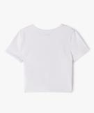 Un tee-shirt fille tendance avec sa coupe raccourcie ou "crop top" ! Le tee-shirt manches courtes présente une coupe droite ajustée, très confortable grâce à sa confection stretch. Pour une allure décontractée, il est décoré sur l'avant d'une inscription et doté d'une finition bord-côte au col et en bas de manches. Le tee-shirt en coton extensible possède un col rond et une base droite. Il se combine merveilleusement avec un jean wide leg taille haute ou un pantalon cargo.