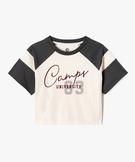 Ce tee-shirt Camps United promet aux grandes filles un look véritablement tendance ! Il s'inspire du vestiaire collège américain mais avec une coupe crop top très mode. Le tee-shirt à manches courtes arbore une coupe oversize, des manches raglan, un col rond en large bord-côte et une grande inscription sur le buste. Un tee-shirt fille très cool à porter avec un jean large taille haute ou un jogging fitté et une paire de baskets.