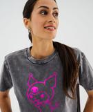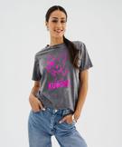 Tee-shirt manches courtes délavé à motif pailleté femme - Kuromi gris
