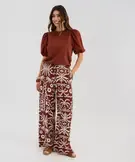 Tee-shirt manches courtes en broderie anglaise femme rouge fonce