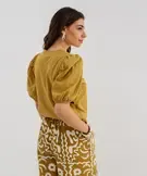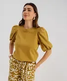 Tee-shirt manches courtes en broderie anglaise femme jaune fonce