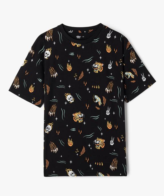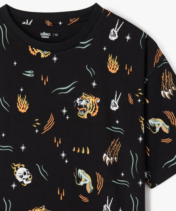 Tee-shirt manches courtes en coton imprimé garçon noir