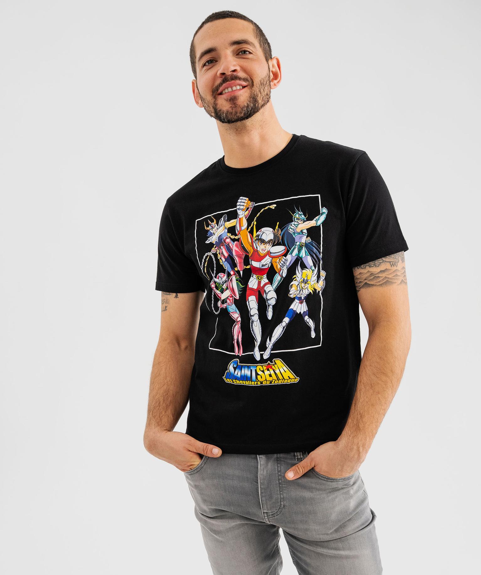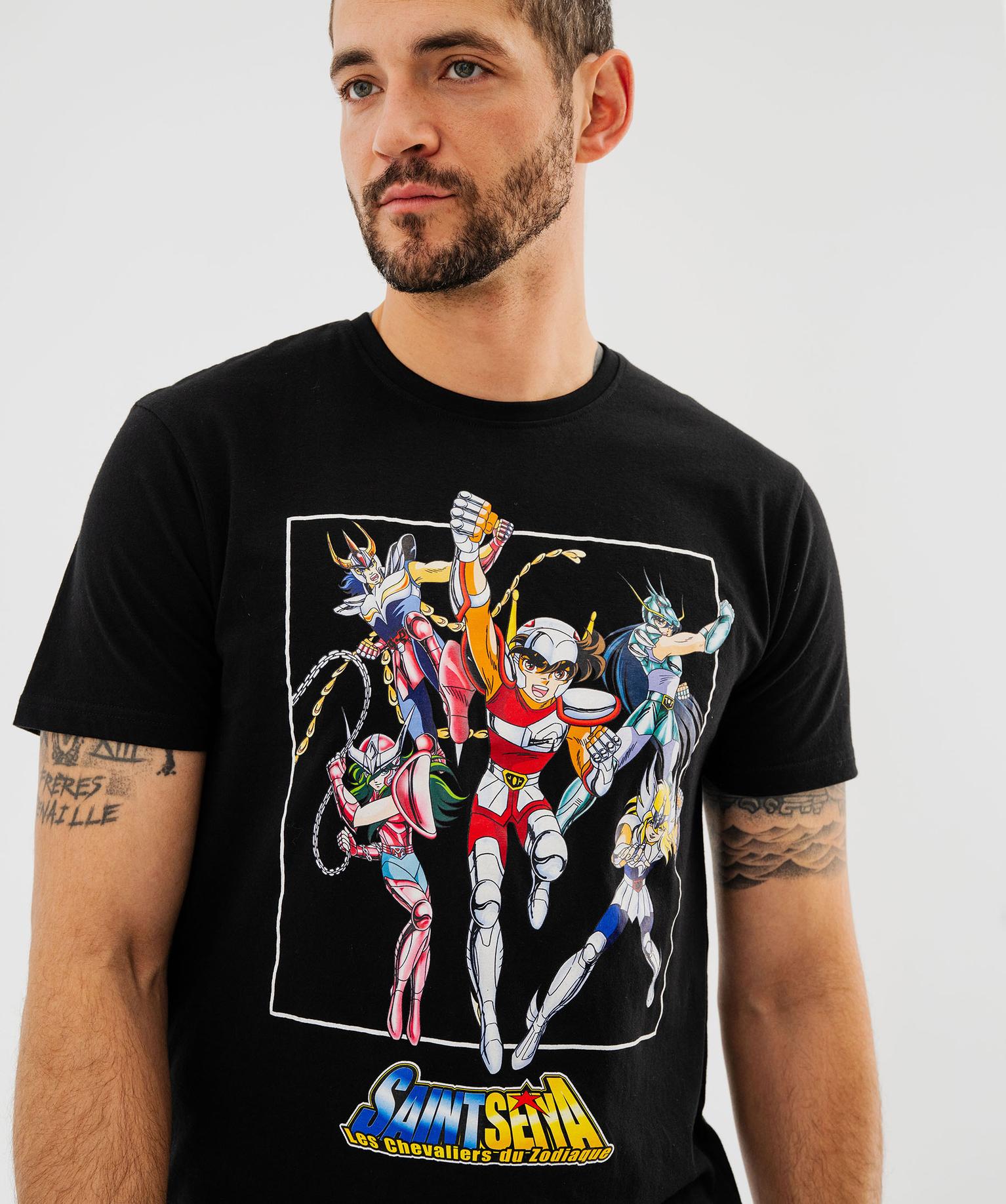 Tee-shirt manches courtes en coton imprimé homme - Les Chevaliers du Zodiaque noir