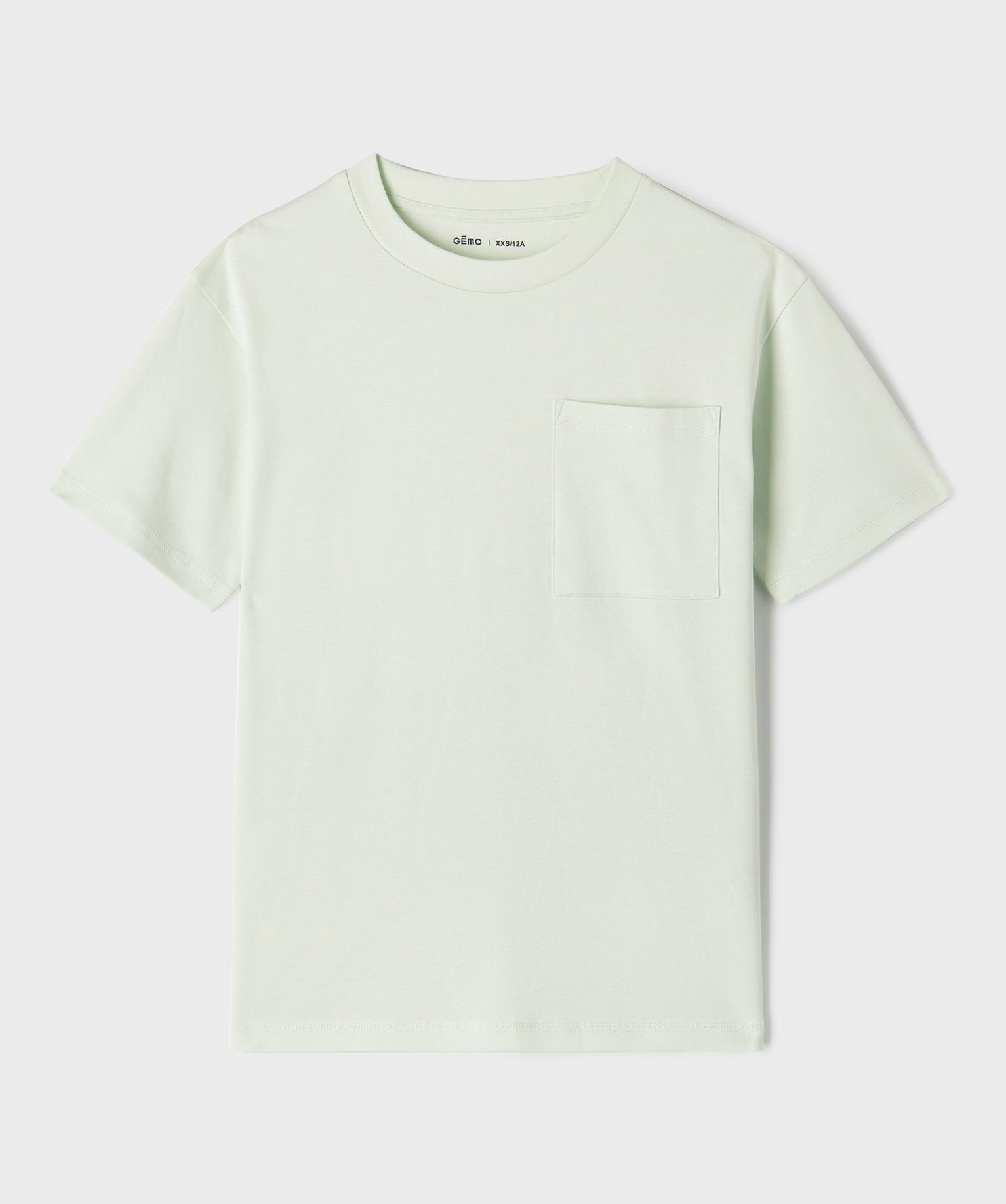 Tee-shirt manches courtes en jersey de coton à poche poitrine garçon vert clair