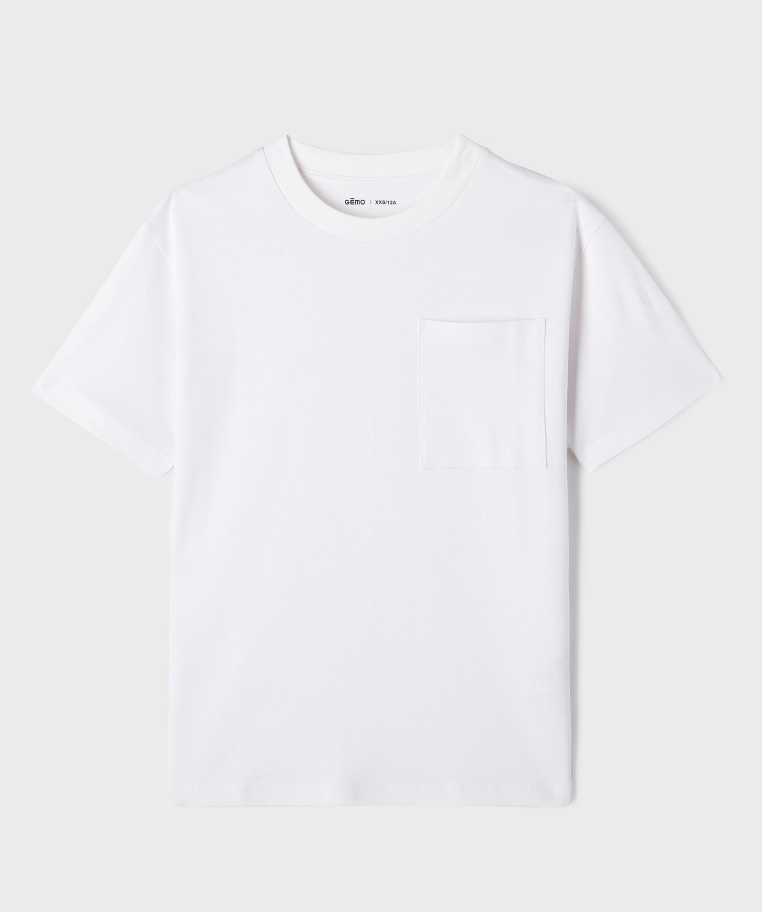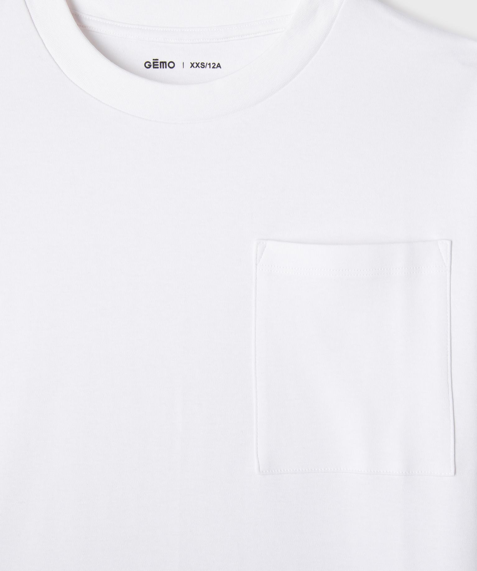 Tee-shirt manches courtes en jersey de coton à poche poitrine garçon blanc