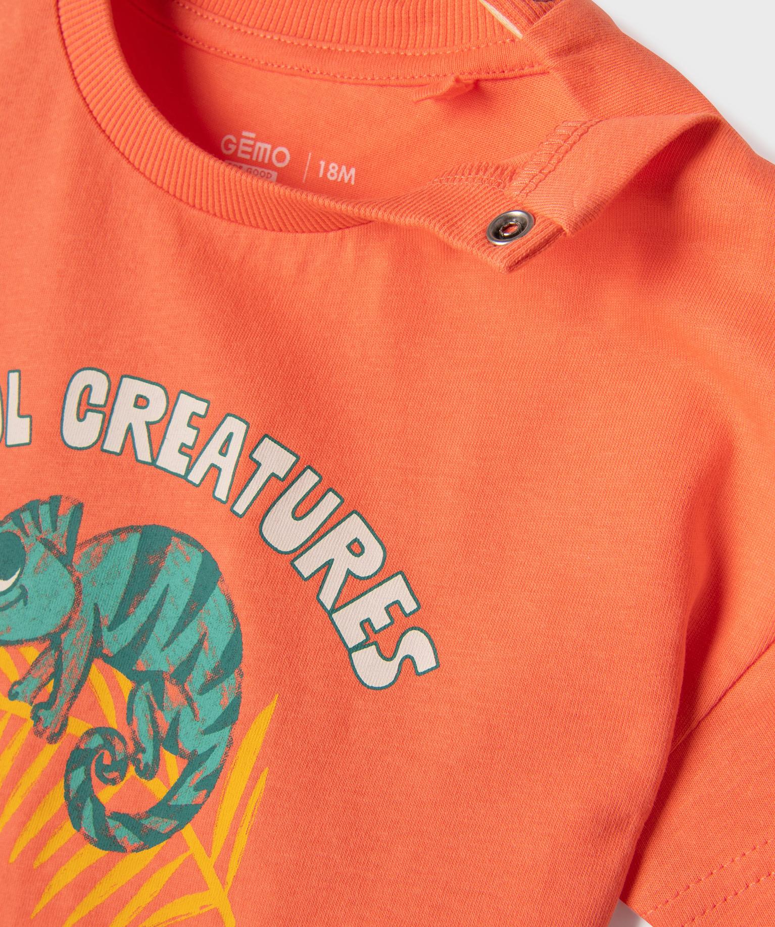 Tee-shirt manches courtes en jersey de coton imprimé bébé garçon orange