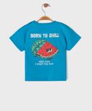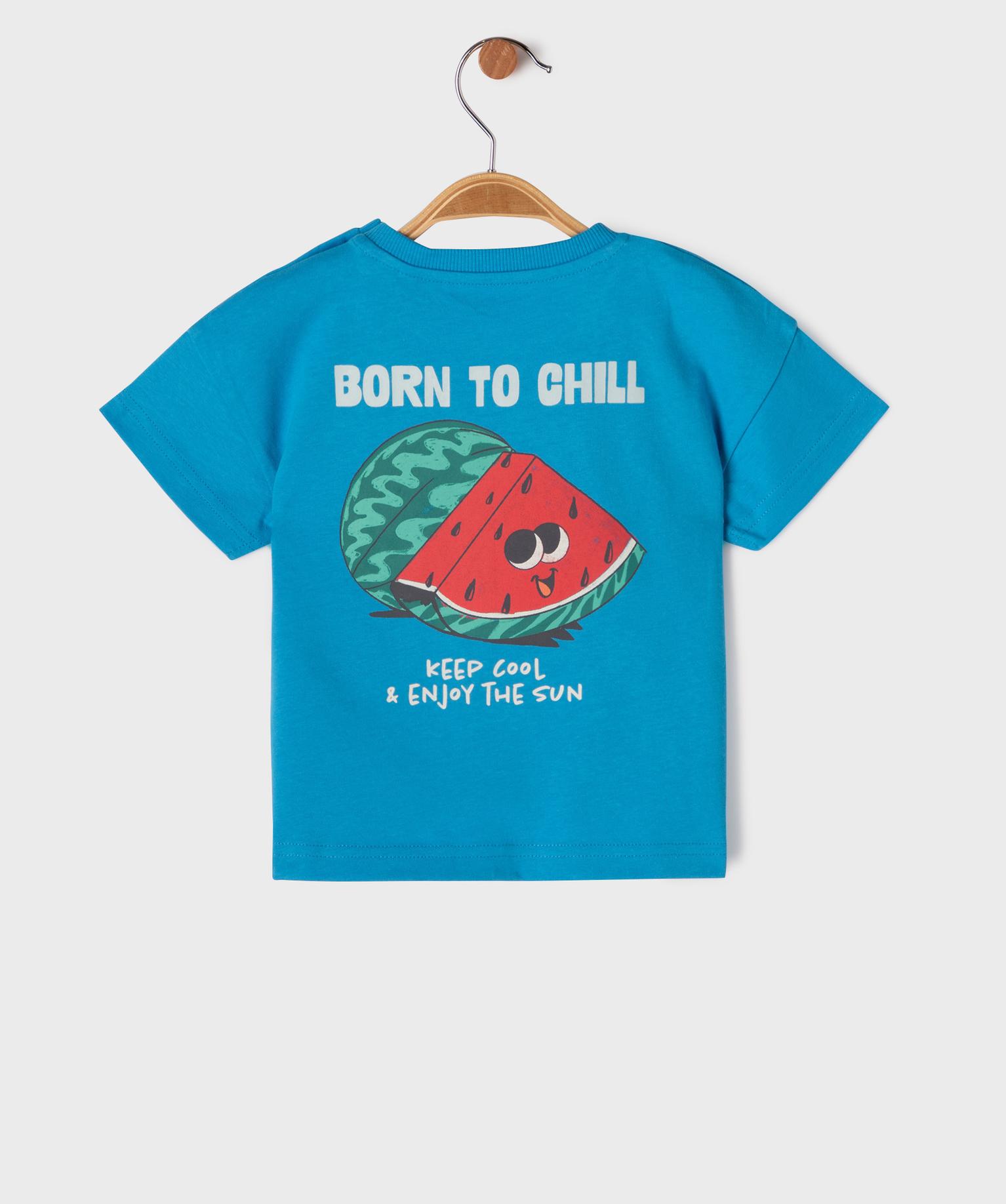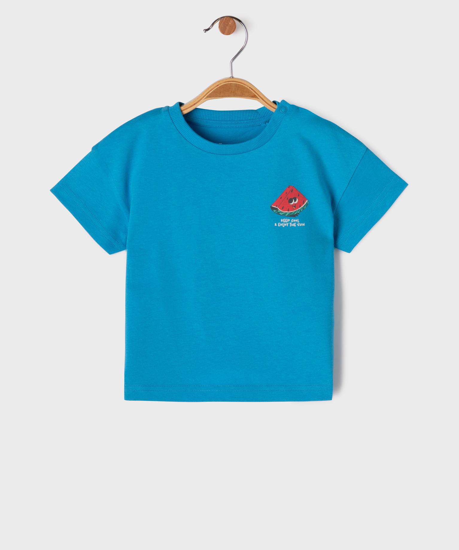 Tee-shirt manches courtes en jersey de coton imprimé devant et dos bébé garçon bleu
