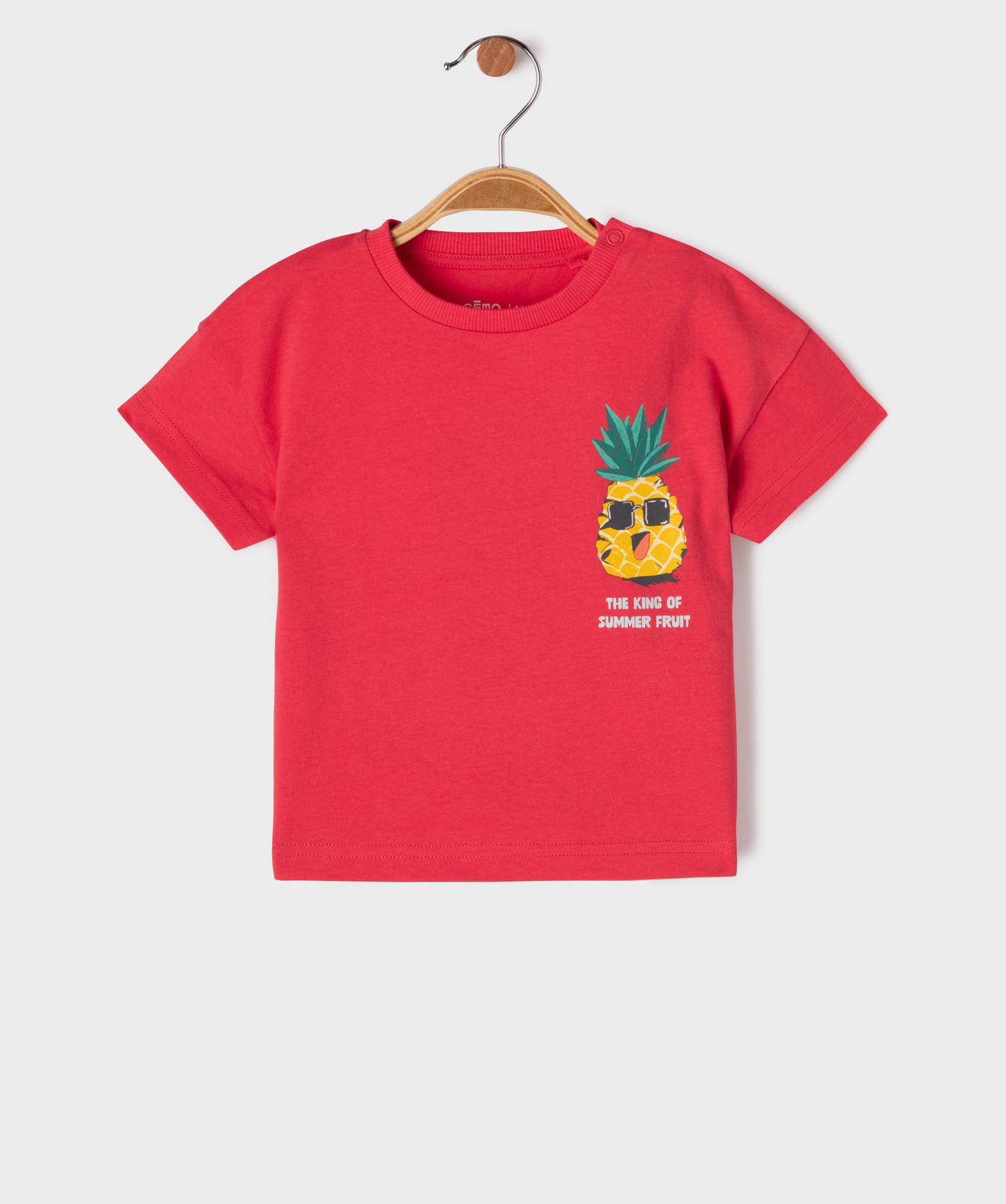 Tee-shirt manches courtes en jersey de coton imprimé devant et dos bébé garçon rouge