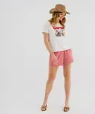 Tee-shirt manches courtes en jersey de coton imprimé femme blanc