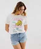 Craquez pour ce tee-shirt femme en jersey de coton. Sa coupe droite, ses manches courtes et son col rond en font un basique confortable et facile à porter. Le devant est animé par un motif estival et des couleurs vives qui apportent du pep’s à vos looks. Parfait pour sublimer shorts et pantalons unis, ce tee-shirt combine style moderne et douceur du coton pour des tenues à la fois confortables et pleines de fraîcheur. Col finition bord-côte. Dos uni.