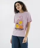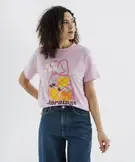 Tee-shirt manches courtes en jersey de coton imprimé femme rose vif