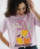 Apportez une touche de fraîcheur à vos tenues d'été avec ce tee-shirt femme en jersey de coton doux. Sa coupe classique, manches courtes et col rond finition bord-côte offrent un confort parfait. Décliné dans une couleur lumineuse et douce, il se distingue par un motif graphique et estival qui dynamise vos shorts et pantalons unis. Polyvalent et facile à porter, ce tee-shirt manches courtes, basique indispensable, combine style, confort et bonne humeur. Dos uni.