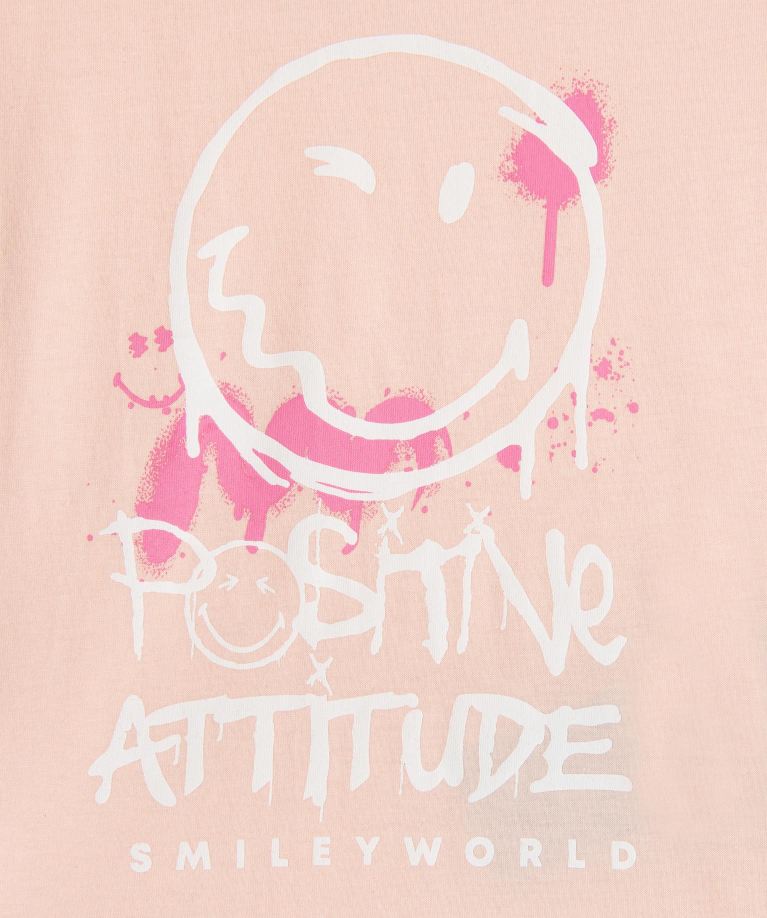 Tee-shirt manches courtes en jersey de coton imprimé fille - Smiley World rose