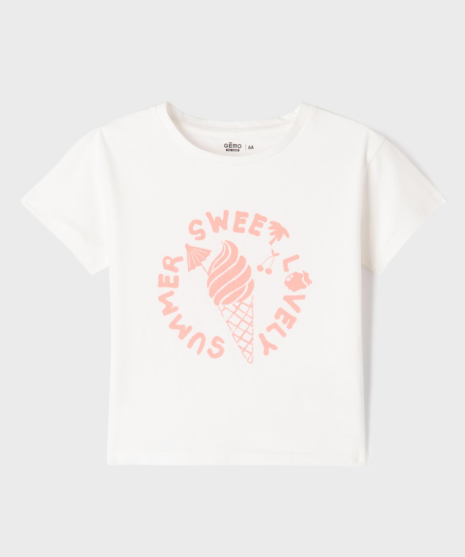 Tee-shirt manches courtes en jersey de coton imprimé fille blanc