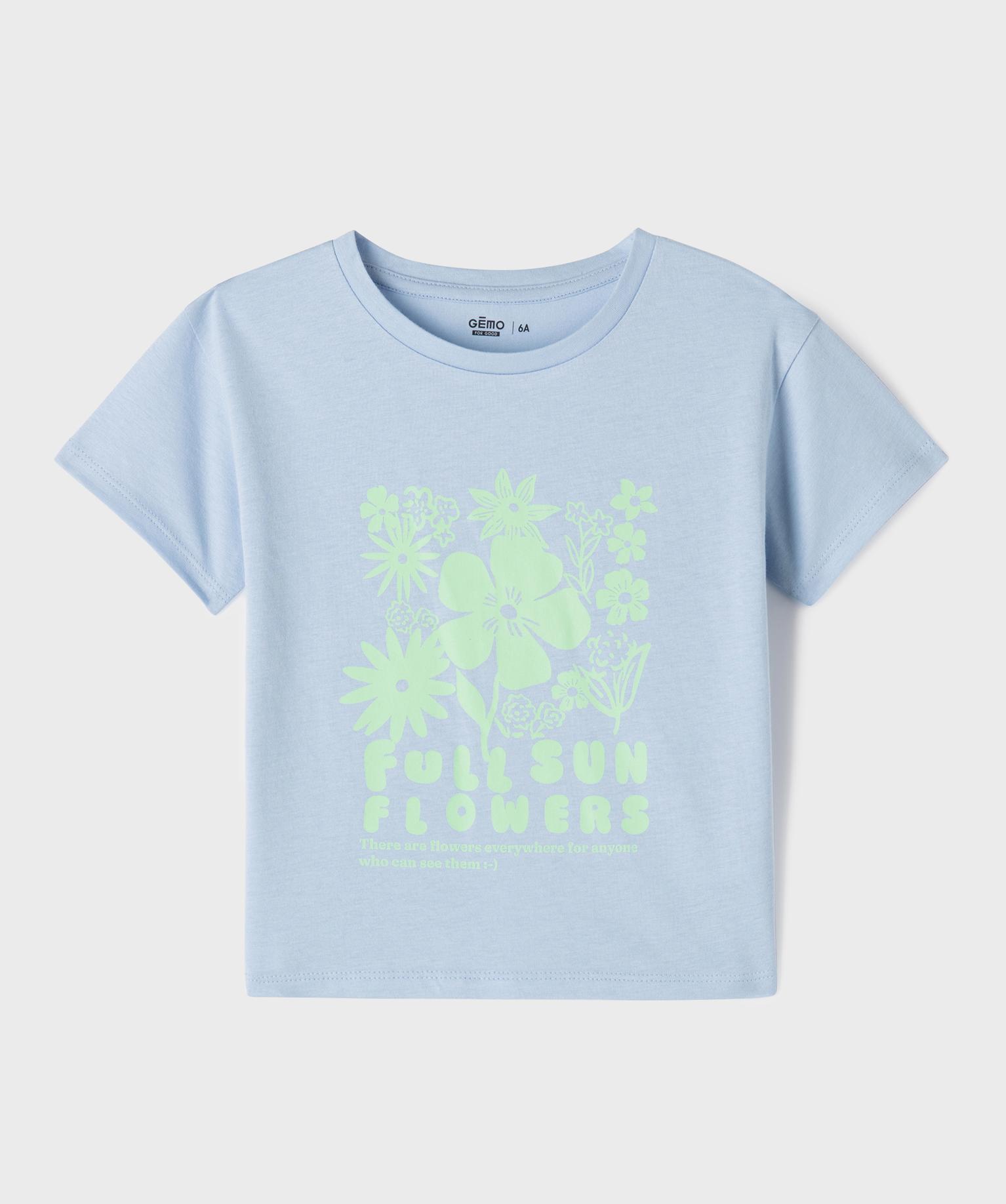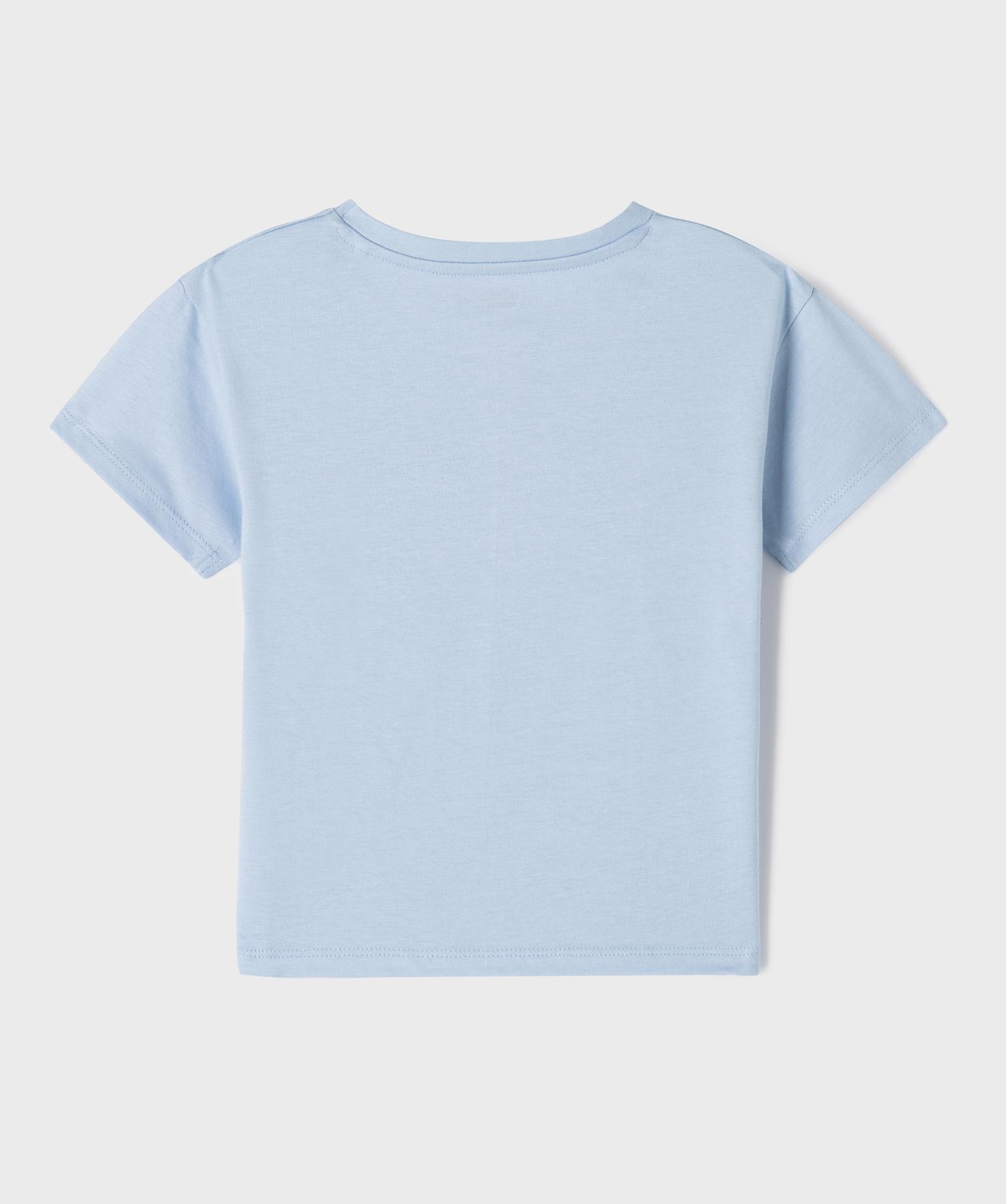 Tee-shirt manches courtes en jersey de coton imprimé fille bleu clair
