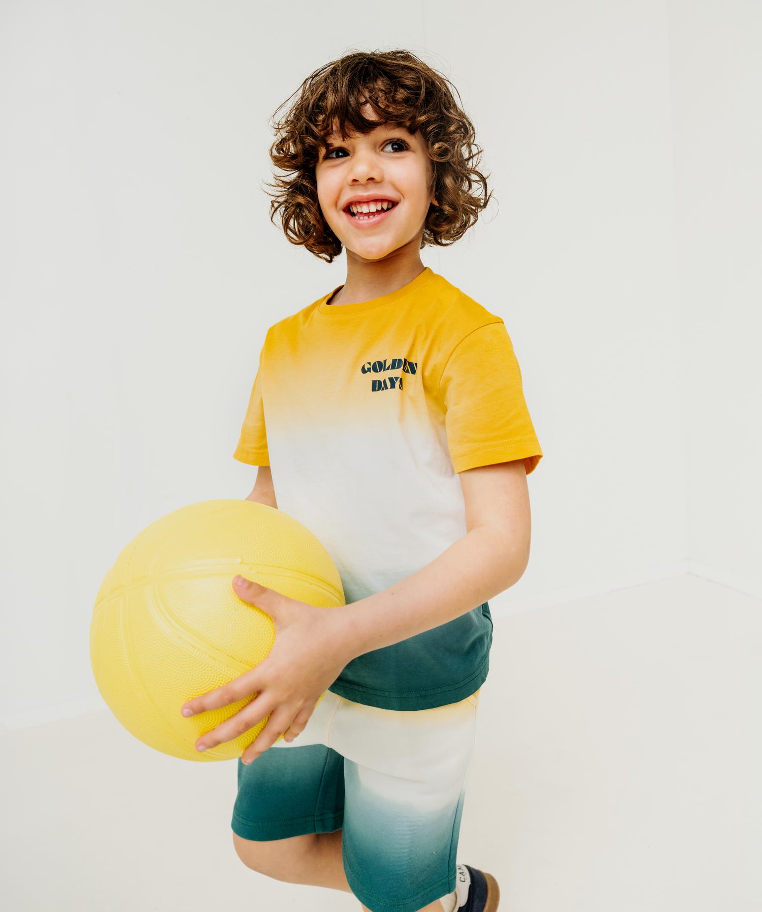 Tee-shirt manches courtes en jersey de coton tie-and-dye garçon jaune