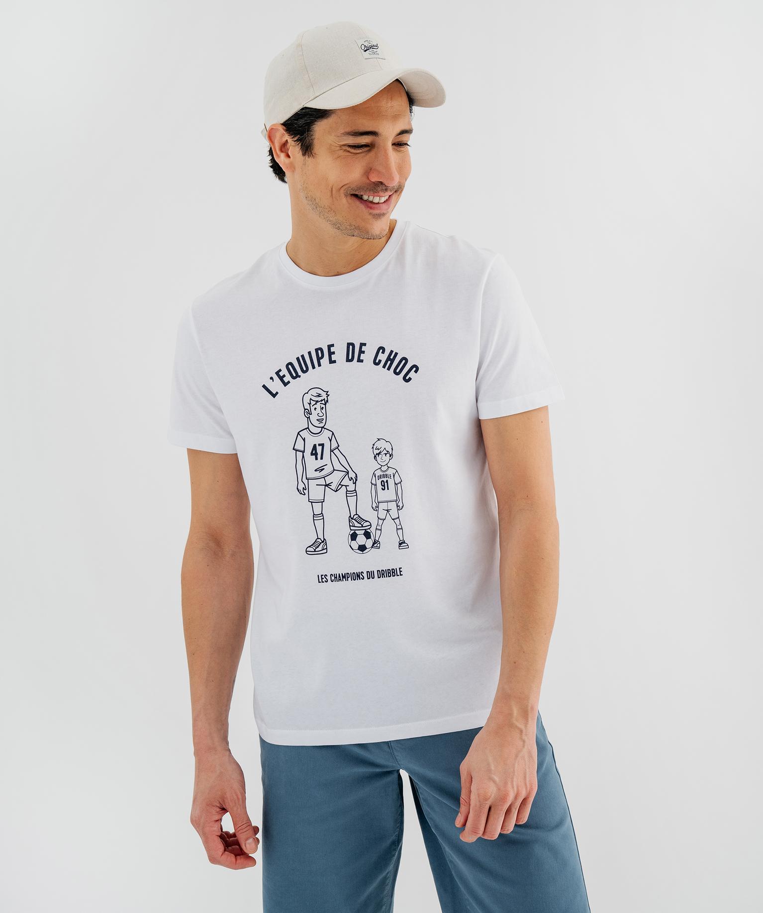 Laissez parler votre passion pour le foot et pour votre bambin avec cet adorable tee-shirt imprimé ! Le grand motif sur l'avant met en lumière le "duo de choc" papa-enfant. Autant que son design, on aime aussi ce tee-shirt homme pour son confort et sa facilité d'usage : coupe droite, confection jersey de coton, col rond en bord-côte. Un classique à message fun pour twister les tenues casual du quotidien. Dos uni.