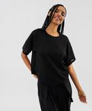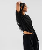 Tee-shirt manches courtes en maille à col fantaisie femme noir