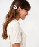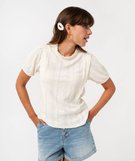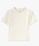 Tee-shirt manches courtes en maille ajourée à volants femme blanc