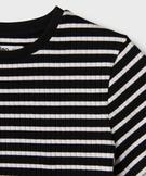 Tee-shirt manches courtes en maille côtelée à rayures fille noir