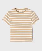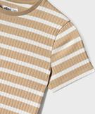 Tee-shirt manches courtes en maille côtelée à rayures fille beige