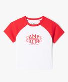 Retrouvez l’univers American College et la touche vintage de Camps United dans ce tee-shirt fille. Un tee-shirt à manches courtes bicolore avec inscriptions sur l’avant et manches raglan contrastantes. Avec sa coupe courte et sa maille côtelée extensible, ce tee-shirt se porte plutôt ajusté avec un jean large taille haute. Finitions surpiquées.