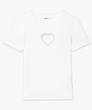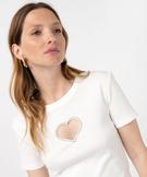 Le tee-shirt manches courtes se féminise avec de simples détails et vous allez l'adorer ! Sa coupe droite se fait plus près du corps pour souligner vos formes, mais tout en conservant un max de confort grâce à une confection en maille côtelée extensible. Le col rond, grand classique, reste en place, mais le décolleté se fait sexy, avec un motif cœur ajouré et souligné de strass. On adore ! Ce tee-shirt pour femme s'intégrera facilement dans une tenue casual ou décontractée. Osez-le sous un blazer ultra chic.