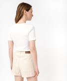 Tee-shirt manches courtes en maille côtelée et ajourée femme blanc chine