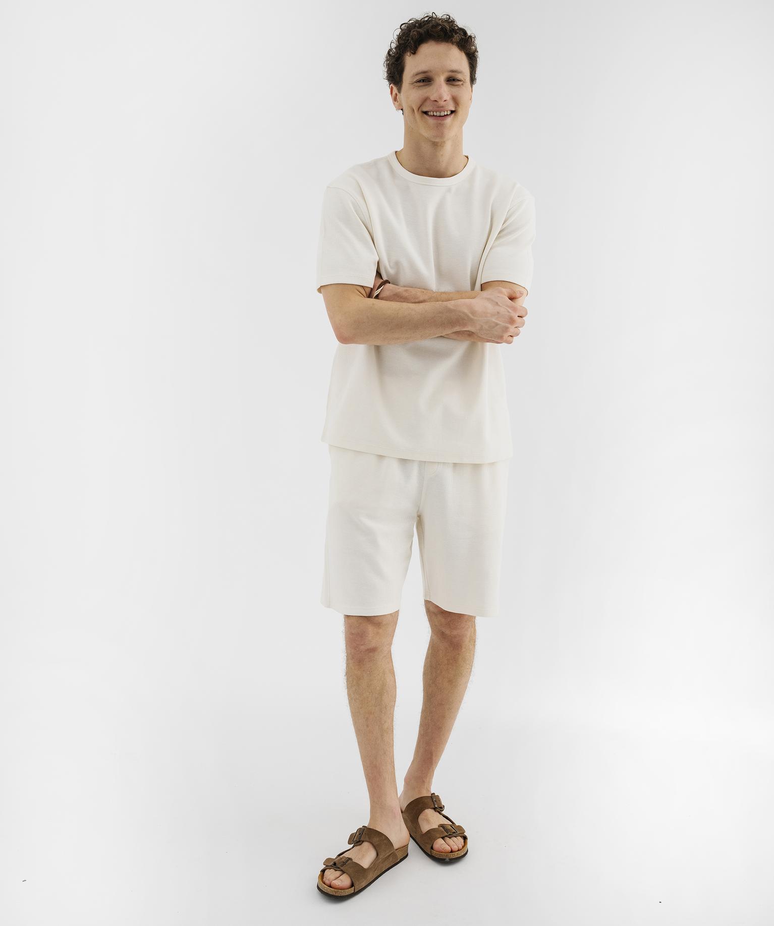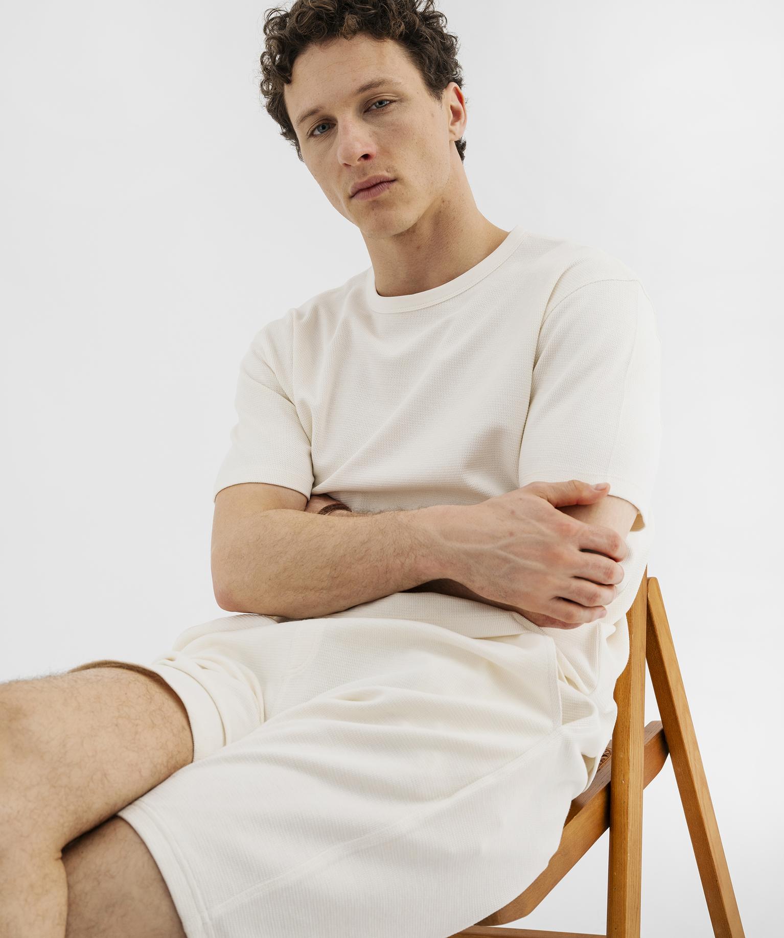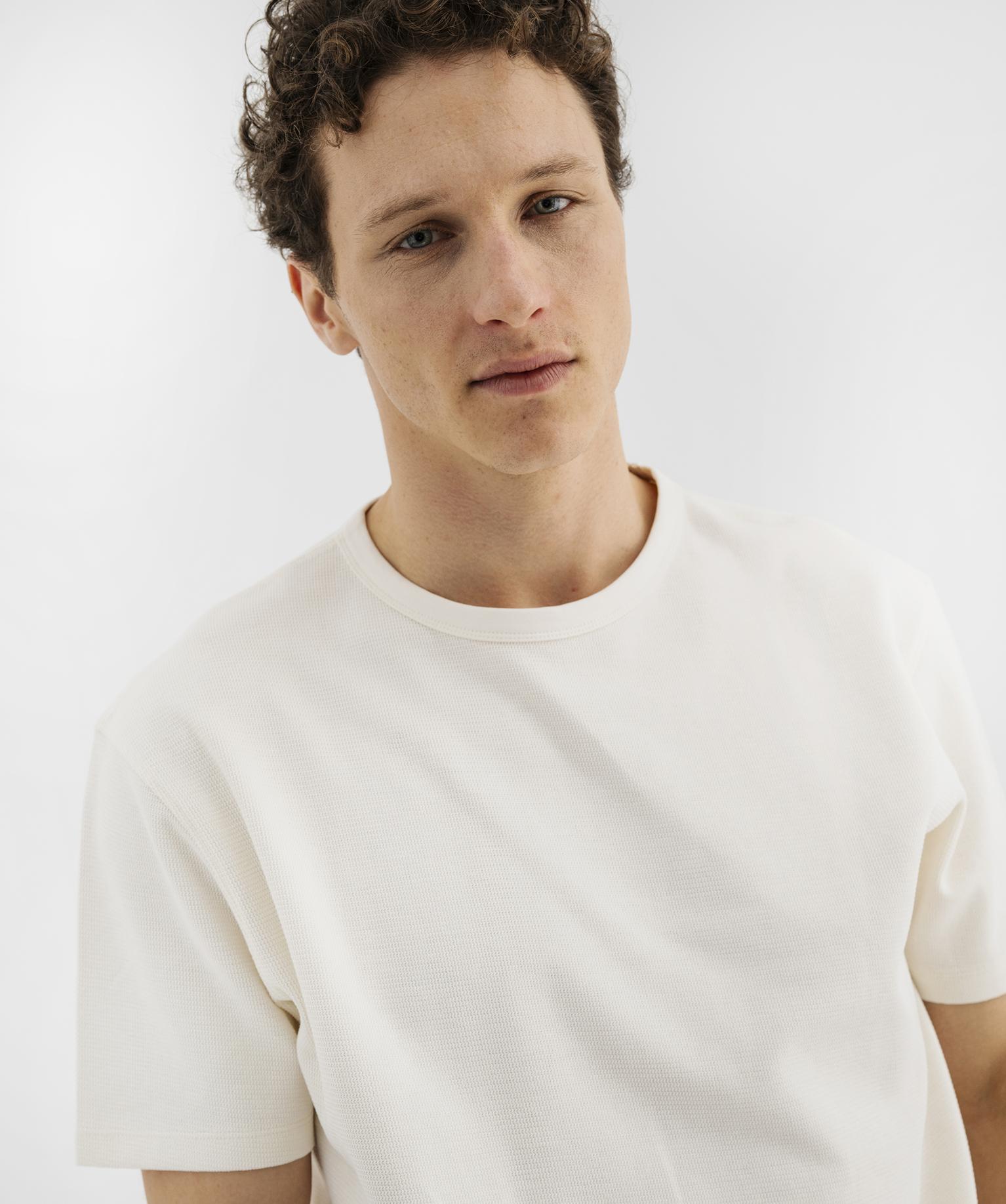 Tee-shirt manches courtes en maille fantaisie homme ecru