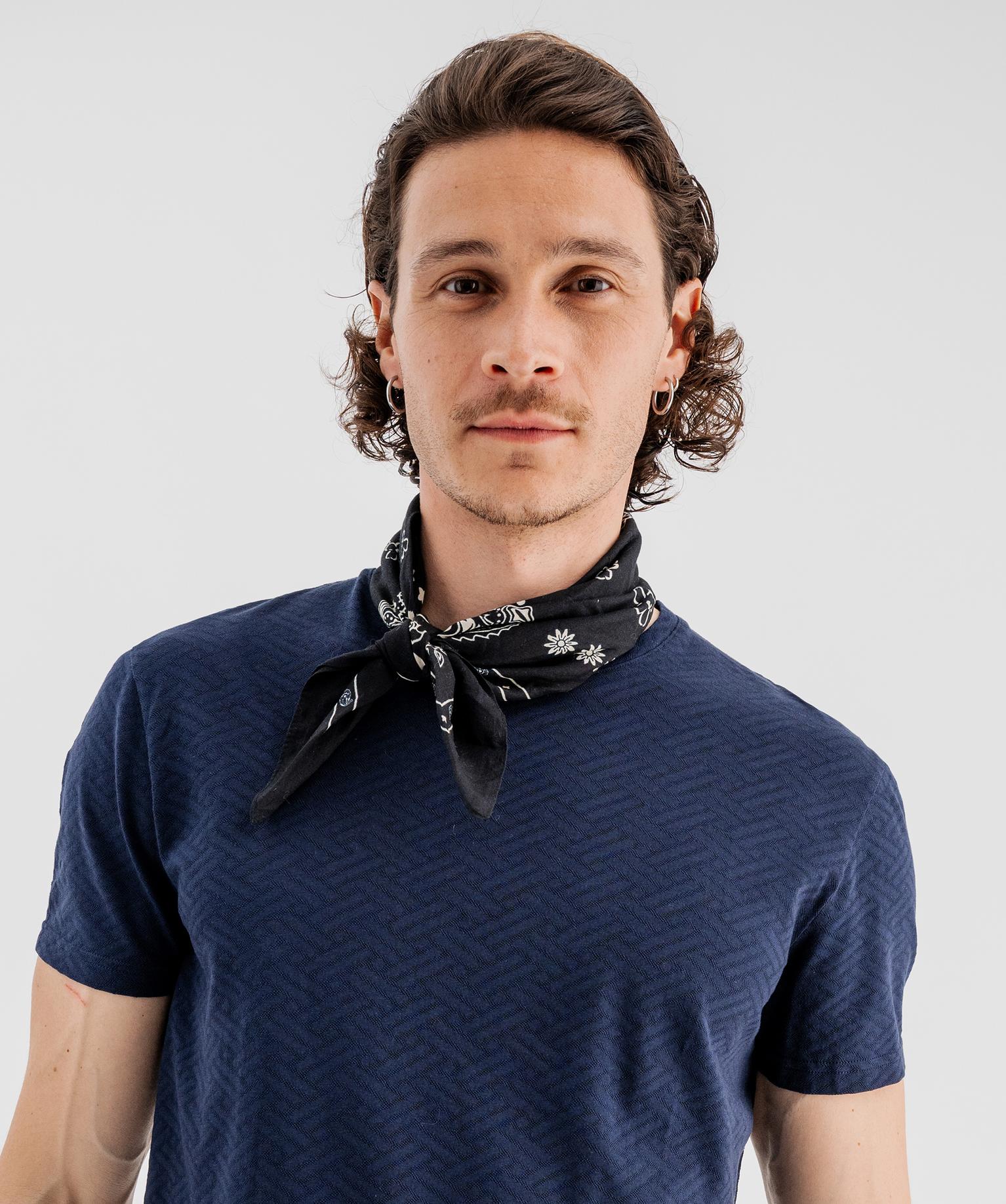 Tee-shirt manches courtes en maille fantaisie homme bleu fonce