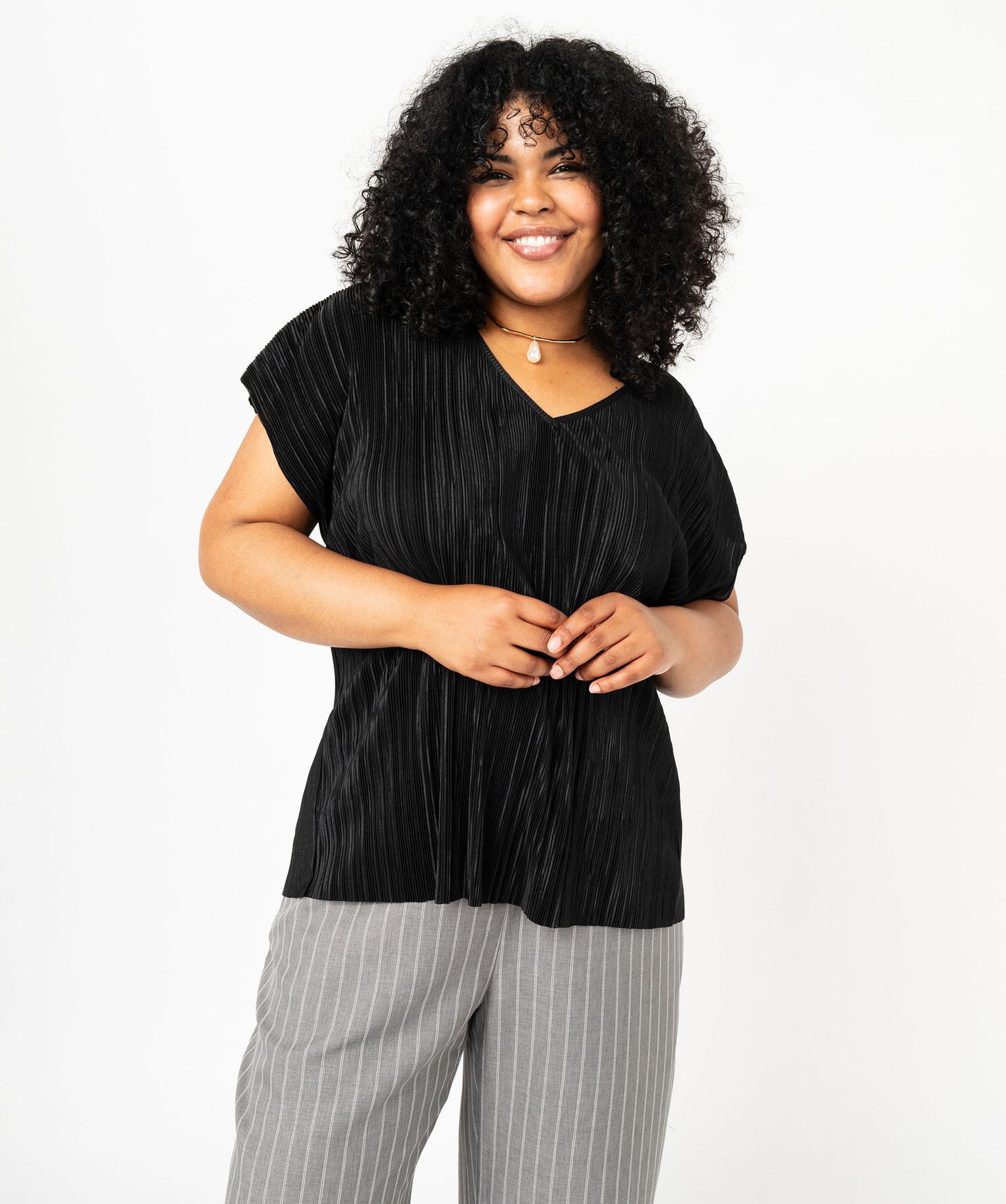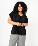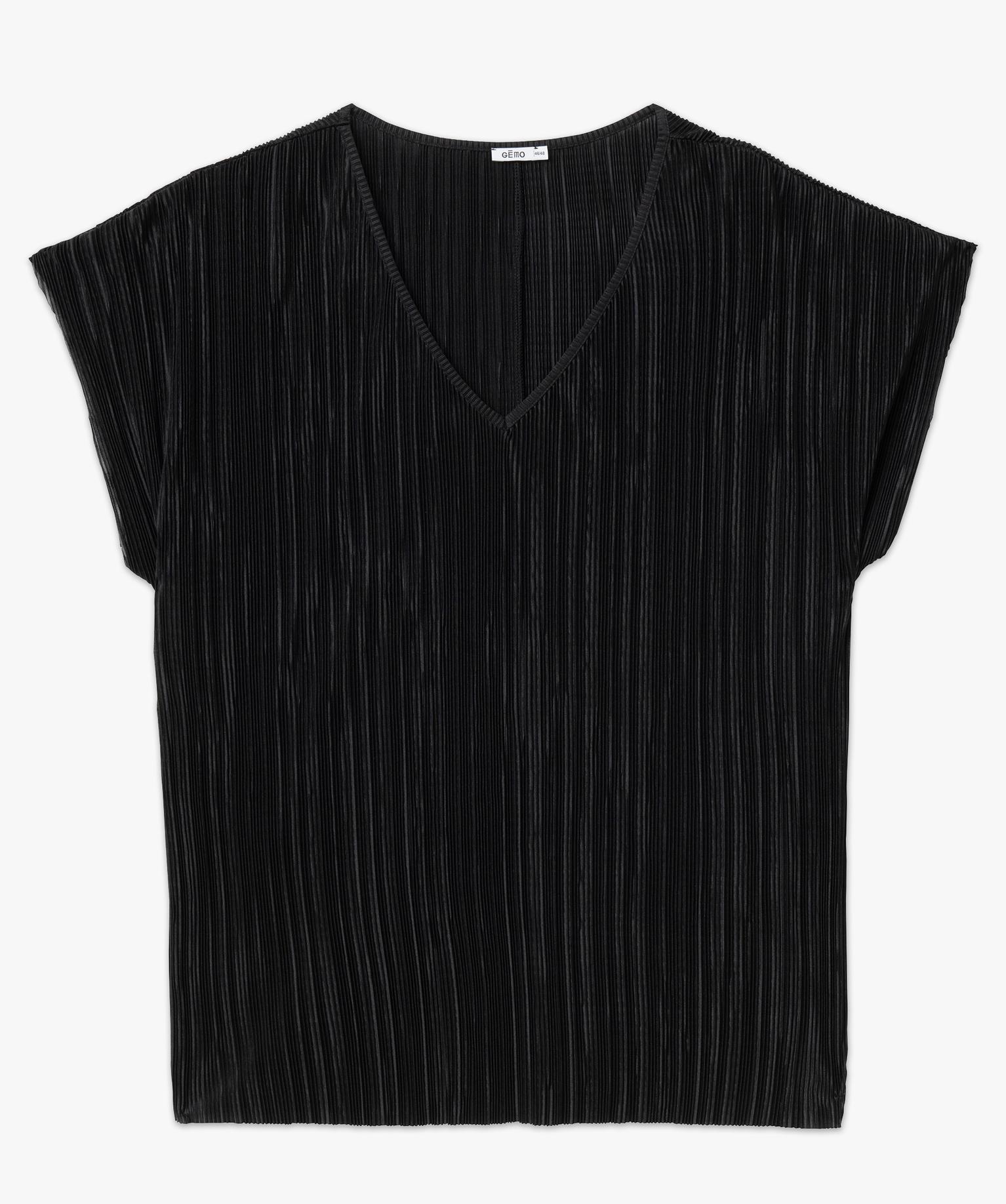 Tee-shirt manches courtes en maille plissée femme grande taille noir