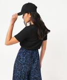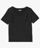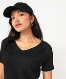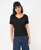 Tee-shirt manches courtes en maille texturée à col V femme noir
