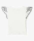 Tee-shirt manches courtes en volant brodé fille blanc chine