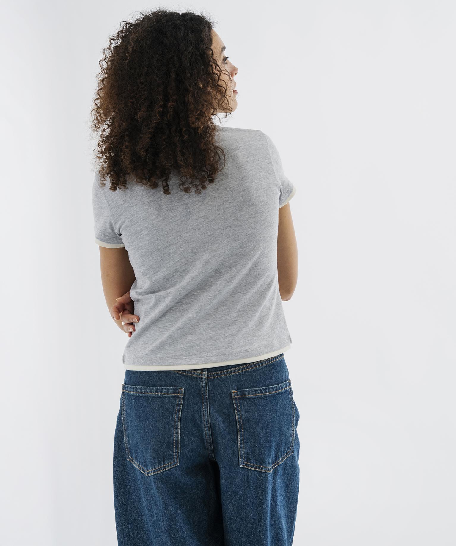 Tee-shirt manches courtes et col rond boutonné femme gris chine