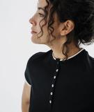 Tee-shirt manches courtes et col rond boutonné femme noir