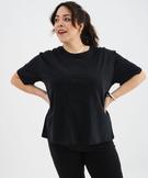 Tee-shirt manches courtes et col rond brodé femme grande taille noir