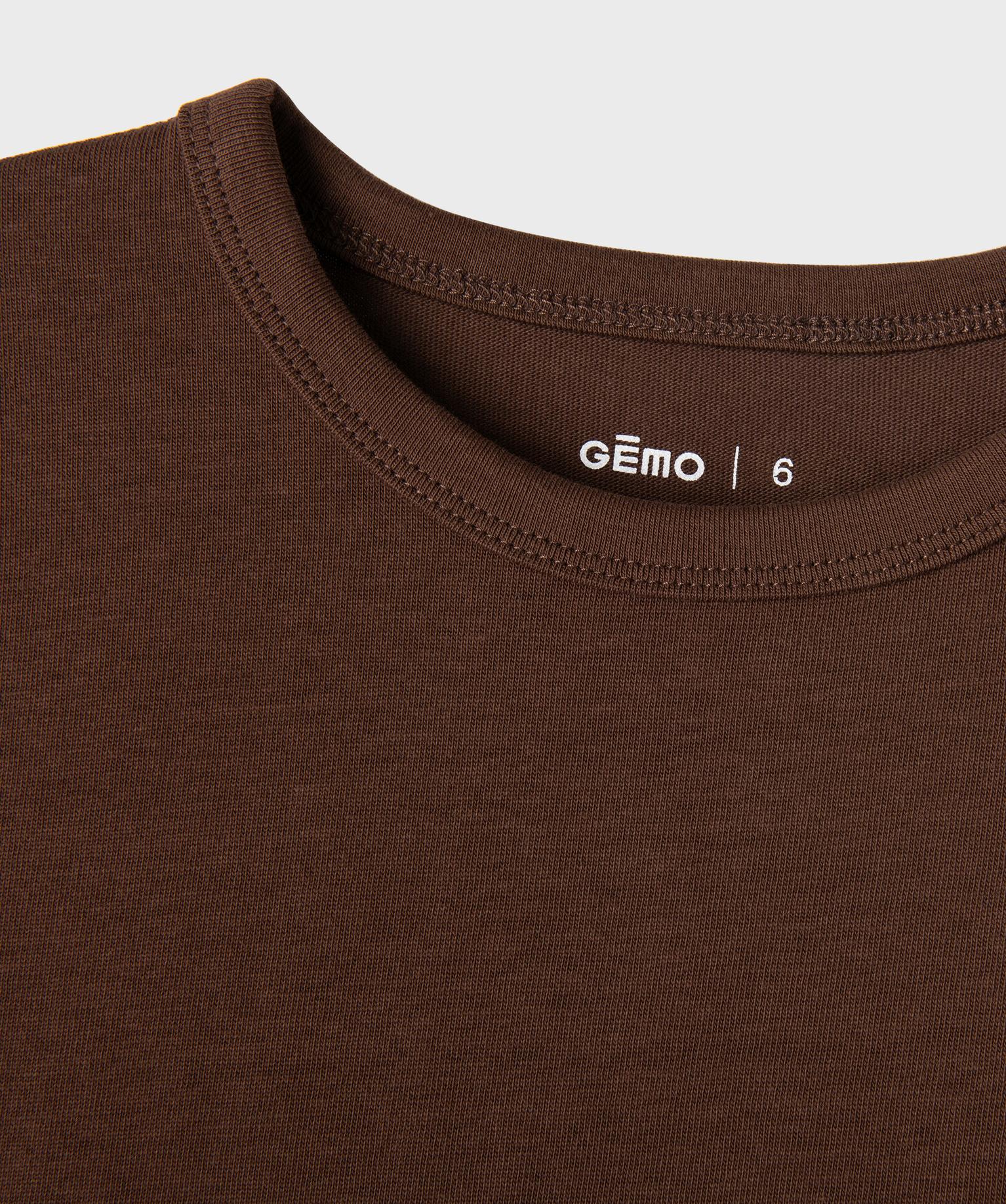 Tee-shirt manches courtes et col rond en coton épais garçon marron fonce