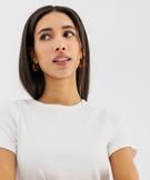 Tee-shirt manches courtes et col rond en maille côtelée femme[MISSING] blanc chine